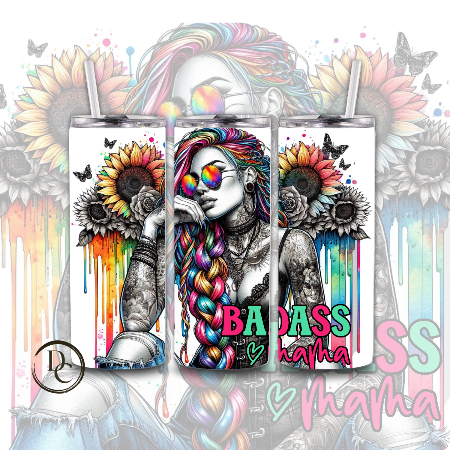 Badass MAMA Affirmation Sarcasm 20 oz Custom Sublimation Tumbler Stainless Steel 9