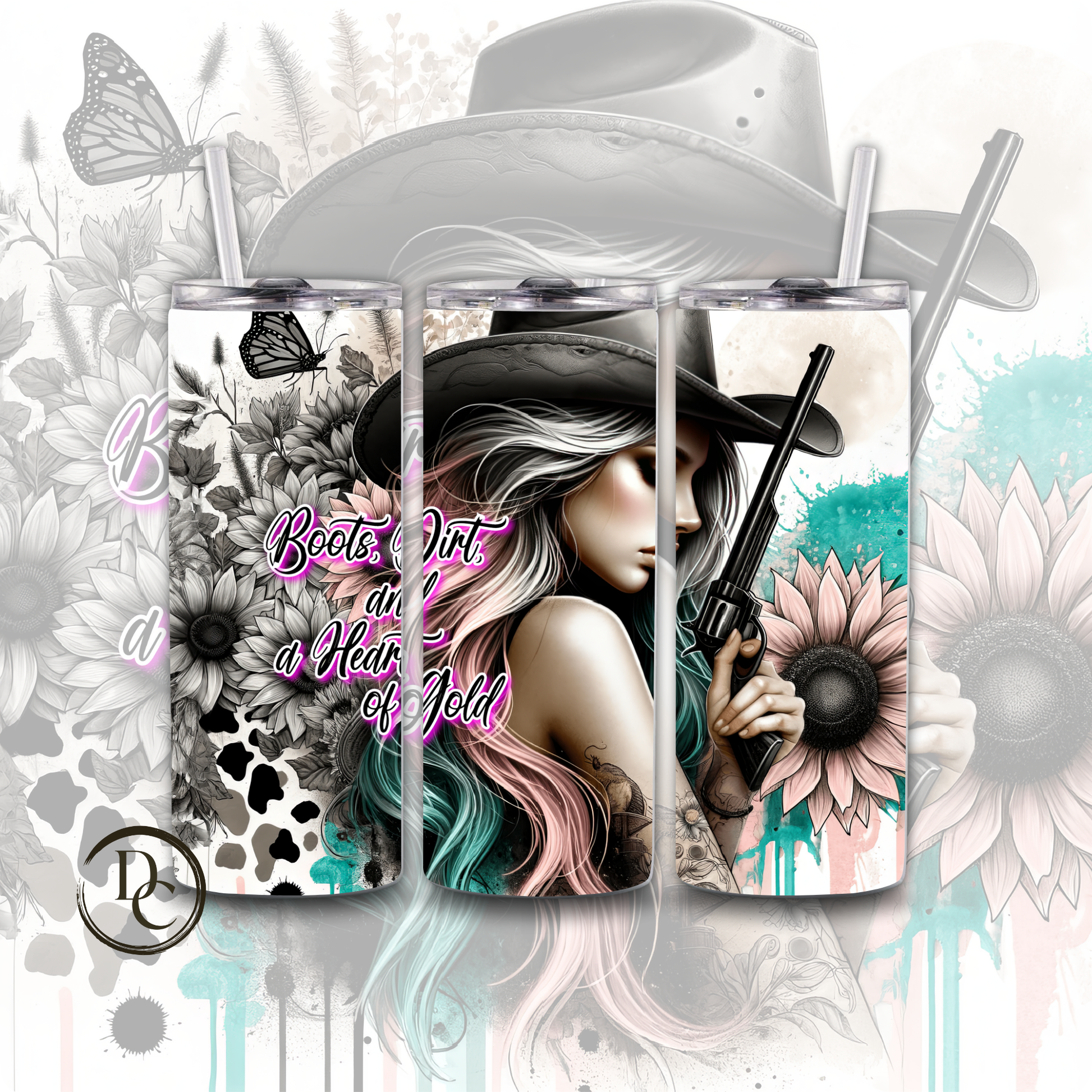 Boots Dirt And A Heart Of Gold Cowgirl 20 oz Tumblers 3