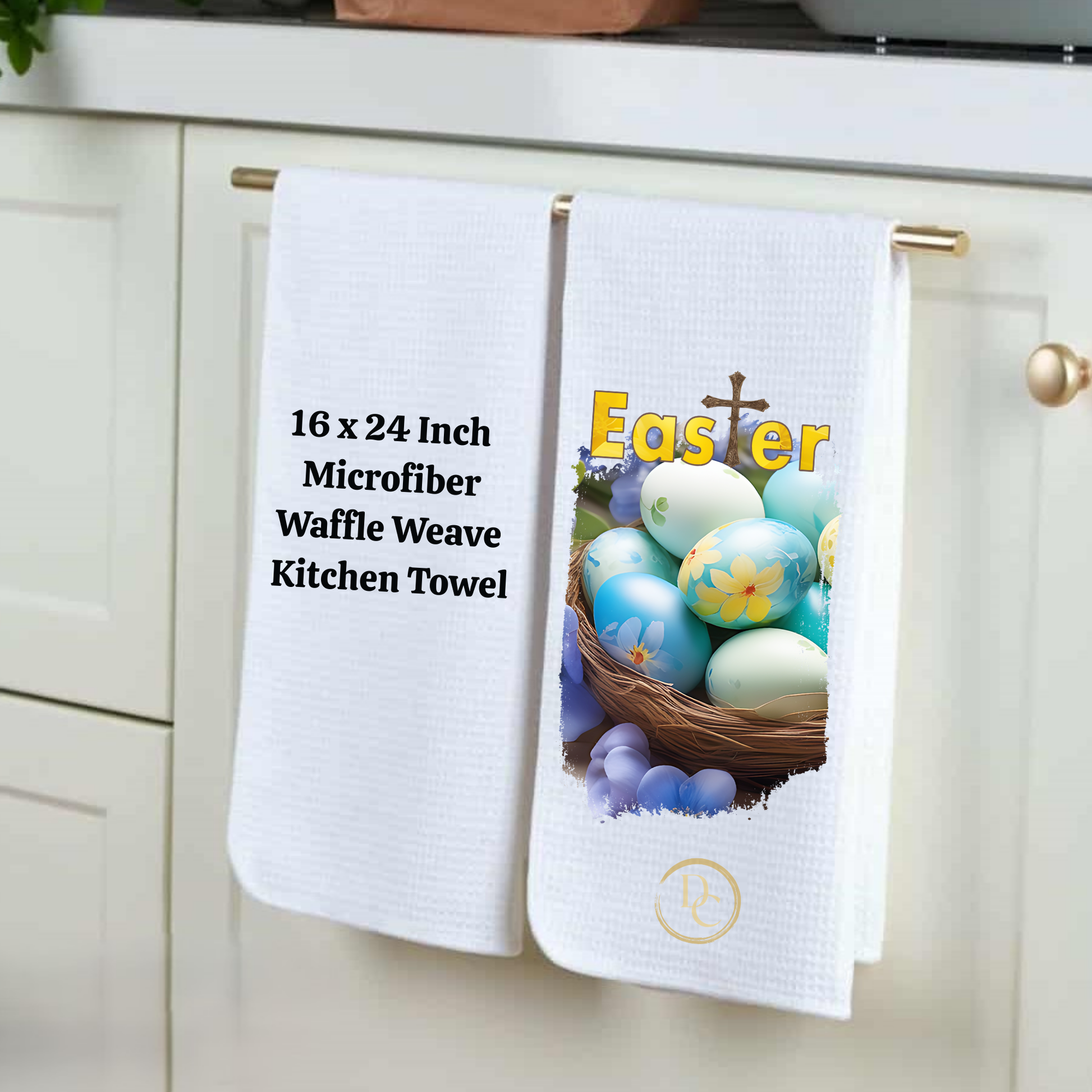 Easter Cross Eggs with Flowers, Easter Kitchen Towel Microfiber Waffle Weave