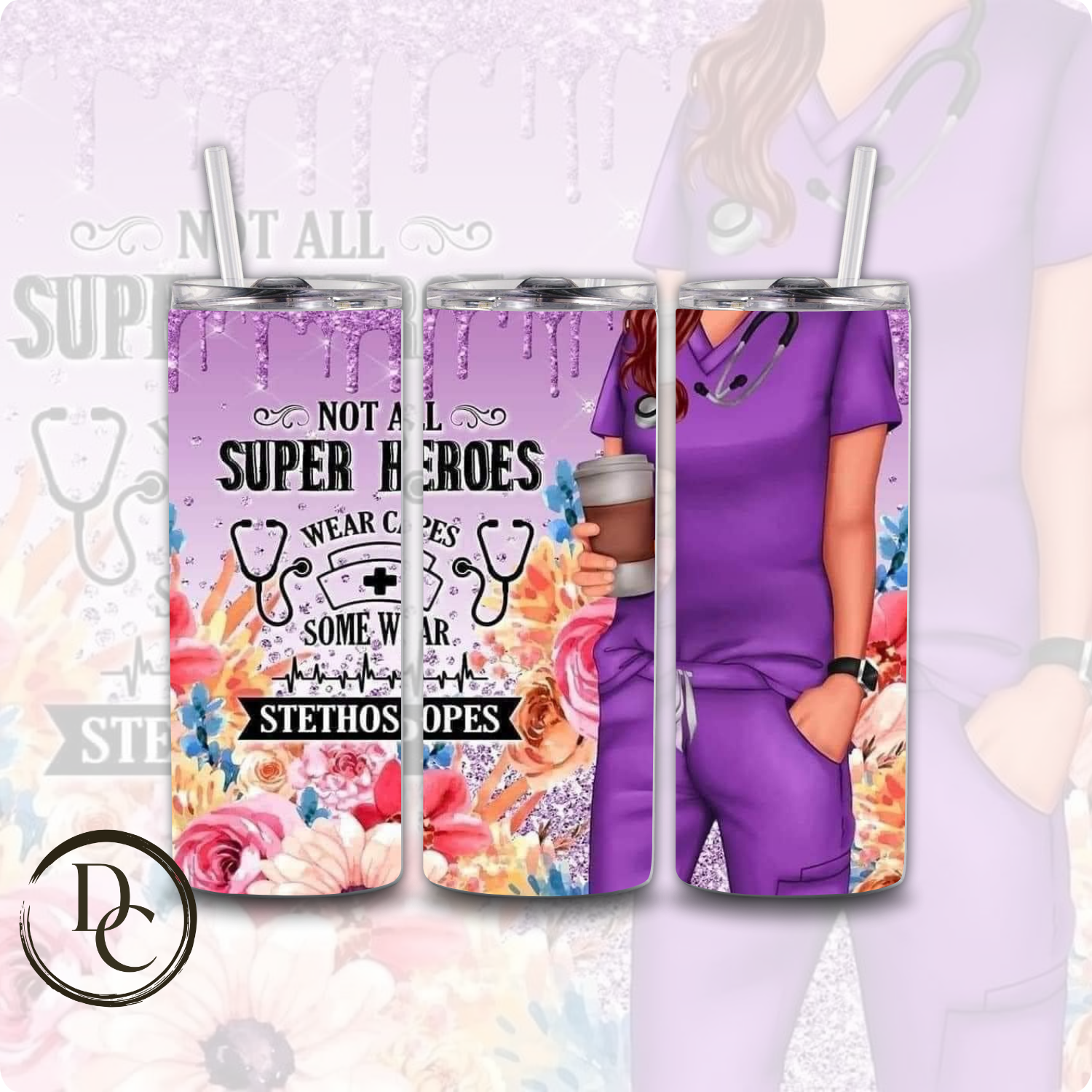 Not All Super Heroes Wear Capes Some Wear Stethoscopes Nurse 20 oz Custom Sublimation Tumbler Stainless Steel #4