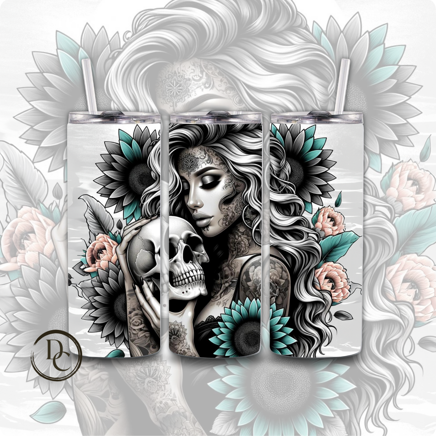 Skull Tattoo Sunflower Sarcasm Affirmation 20 oz Tumblers 9