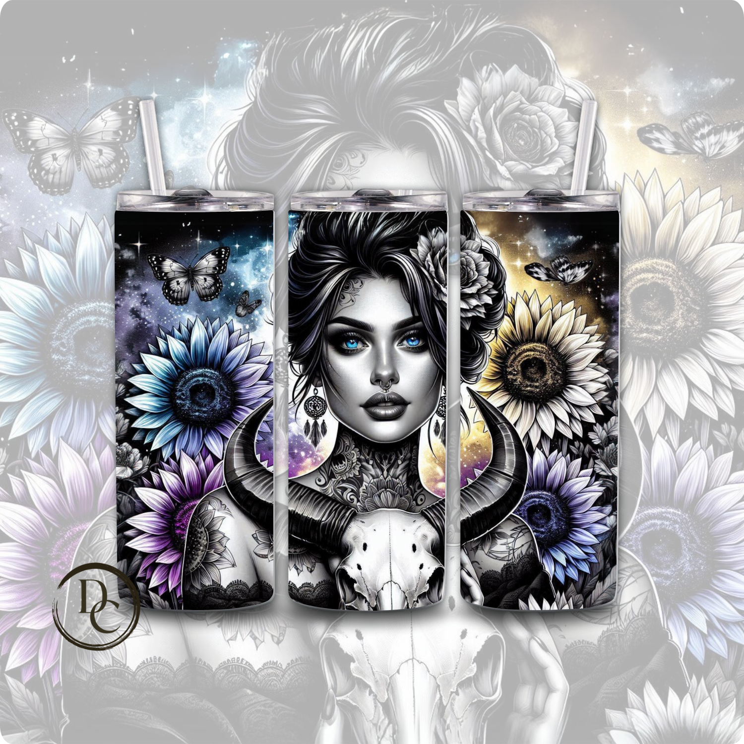 Sunflower Cow Skull Sarcasm Affirmation 20 oz Tumblers 22